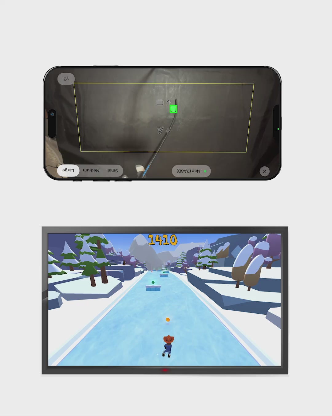 We recommend this phone stand (if you're in Canada use this link instead) so you can play anywhere. Place your phone 48" (122 cm) off the ground (minimum 36") and you're good to go!